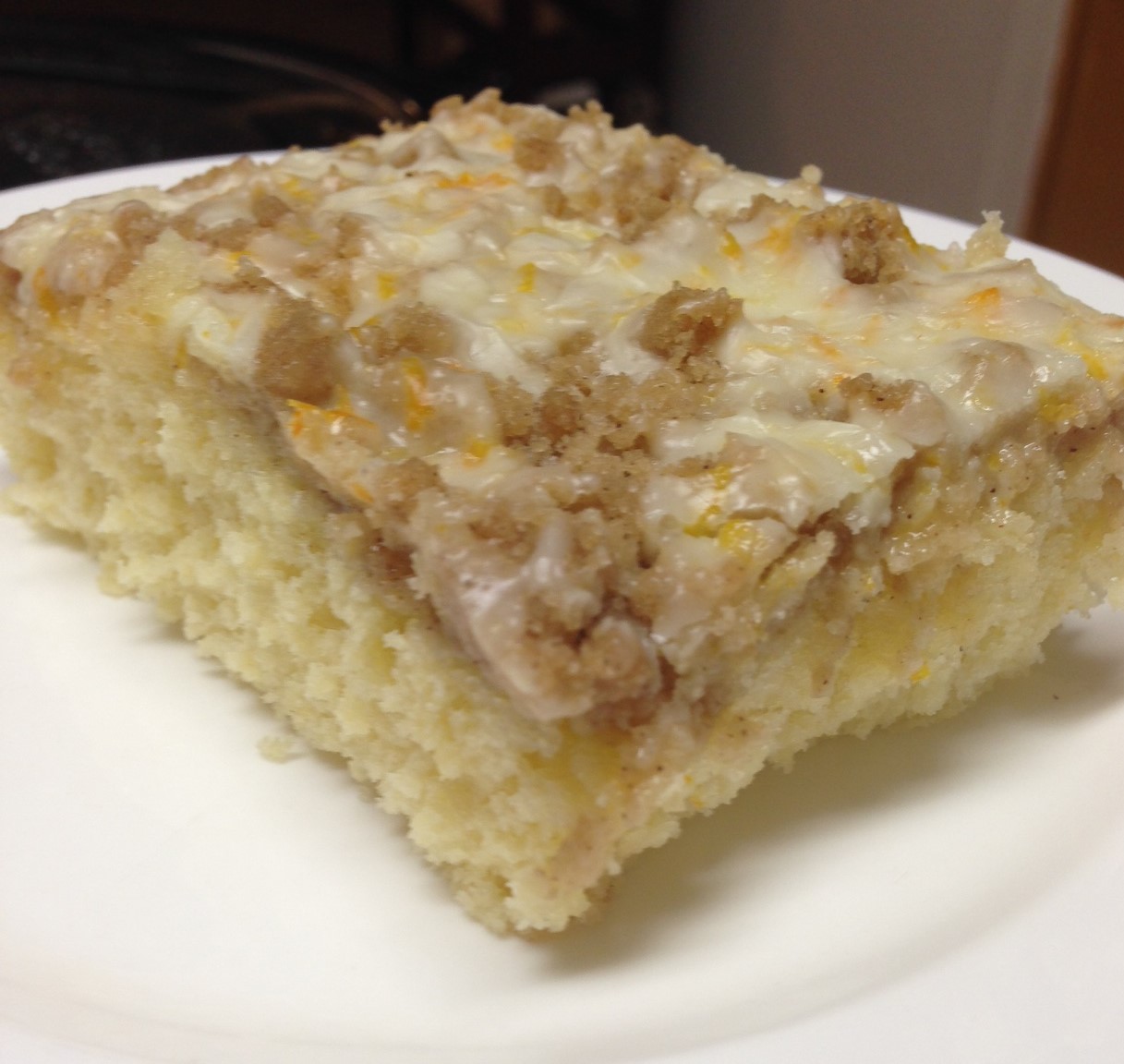 For those of you who requested the recipe for my orange coffee cake, here you go……there is one slice left!!