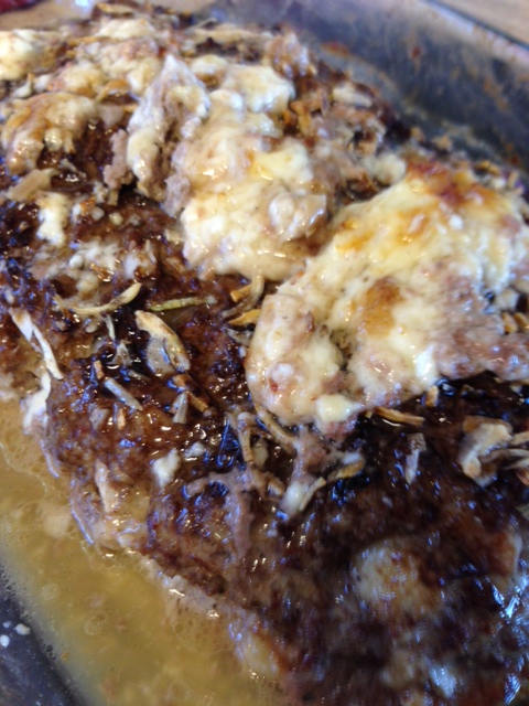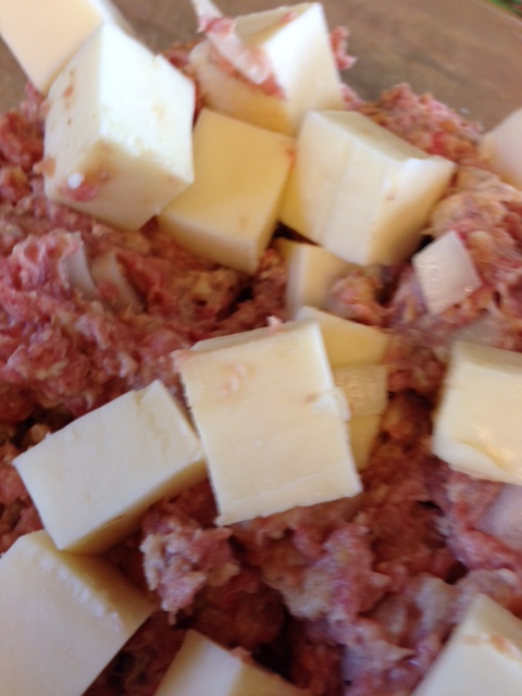 It isn’t the least bit bready or dry. In fact it hardly stays together because it is so juicy and oozy goozy with cheese. Super easy too. I suppose if you want, you could use ground turkey. But I have never tried it that way. I’m sure it would work well though. What really makes this meatloaf unusual is the cheese. I cut it into cubes and mix it in with the rest of the ingredients. You poke it all in so you don’t see the cheese when you form it into your loaf. Then once cooked and sliced, the cheese is all oozing and melty. The next day you slice it, slightly pan fry it and put it on some of your favorite bread or a bun, FANTASTIC!! (Picture of the samich tomorrow)