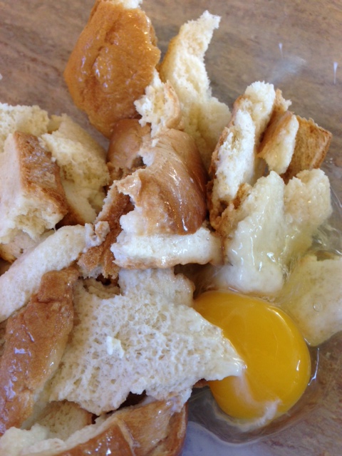 enough milk to soak the bread in so its wet (approx. 1/4 cup)