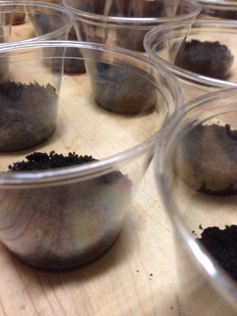 Mix the meat, onion, garlic, corn starch and soy together. Lay the won ton wrappers out, and place a heaping teaspoon of meat mixture in the center of each wrapper.