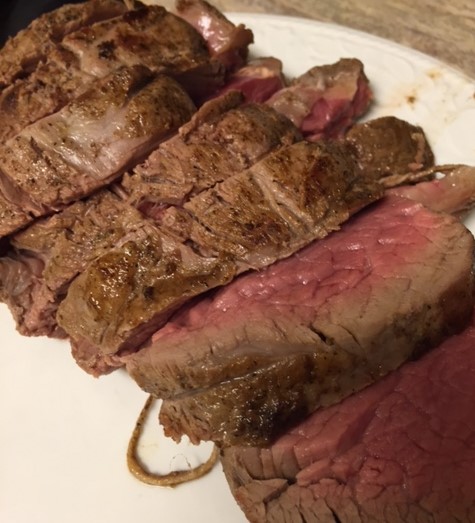 In a cast iron skillet, on medium high heat, melt 2 tablespoons of butter and 1 tablespoon of vegetable oil. Lightly brown the roast on all sides. Once it is seared, add 1 stick of butter and garlic clove (optional) to the skillet. Place the skillet in the preheated oven. Roast uncovered, for 10 minutes. Turn it over and cook for another 10 minutes, or until internal temperature reaches 135 (medium rare). Remove from oven and skillet and allow to rest for approx. 5 minutes. You will not be disappointed….I’m tellin ya, you must try this.