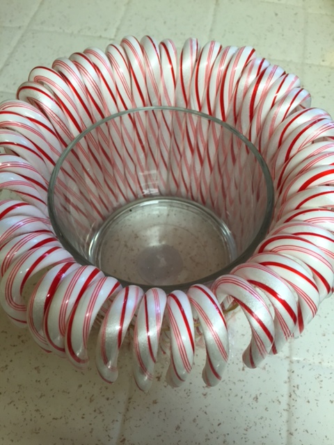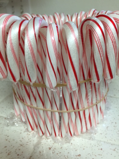Continue with the candy canes, all the way around, butting the candy canes close together.