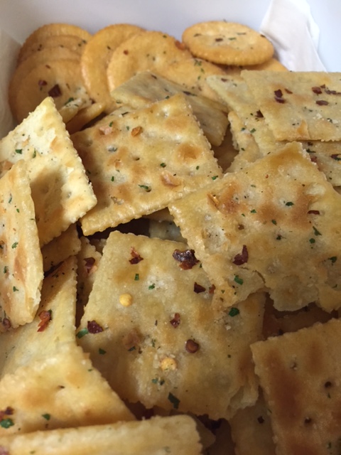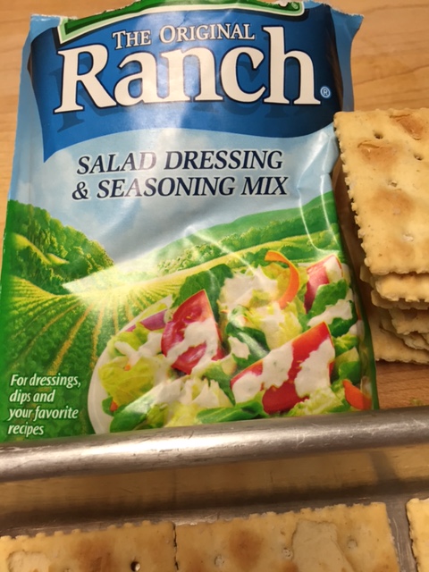 So, I saw this recipe on Pinterest. Everyone had their version. But everyone agreed that these crackers are addicting. I looked at the various recipes and thought, EH…..not my thing. But for some reason, I wanted to try them out. They are the perfect party snack. I used both saltines and Ritz. But I think you could probably use any kind of plain cracker. You will notice the recipe calls for oil. That was a huge turn off for me…the thought of all that oil on my crackers. All the recipes that I saw on line said to put the crackers into the oil for awhile. Hmmmm. I just couldn’t do it. So I brushed the oil mixture onto the crackers with a pastry brush, thus having a little more control on the amount of oil. I also replaced some of the oil with butter. HUGE surprise there, right? I am a butter girl…not an oil girl. 🙂 I also baked mine for a few minutes. Most of the recipes on line didn’t bake them.