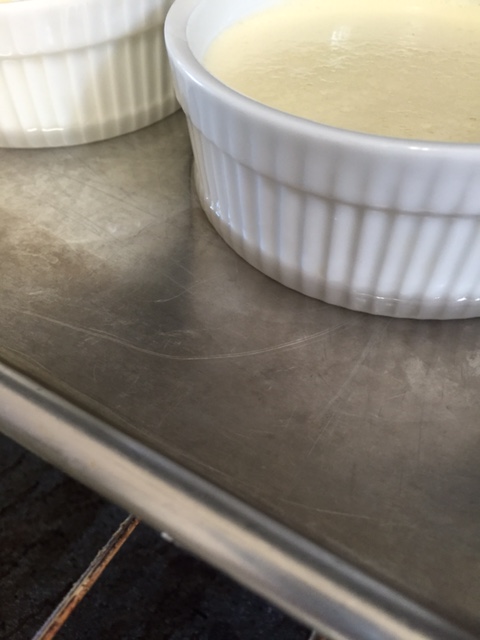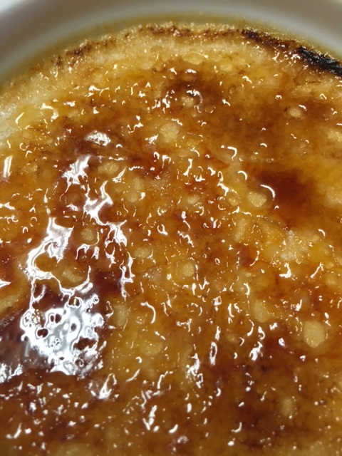 Preheat oven to 325 deg. Heat the heavy cream just till it starts to boil. Remove from heat. In a mixing bowl, whisk the egg yolks and sugar together until the mixture is pale and creamy looking. Pour a small amount of the hot cream into the egg/sugar mixture. Start whisking and then slowly drizzle in the rest of the cream. Add the irish cream and vanilla. if any of your egg scrambled, you may want to strain your mixture. Then pour into ramekins. I used 3 ramekins. Place the ramekins onto a baking sheet or cake pan. Add hot water to the pan. (don’t splash into your ramekins). The hot water should reach almost half way up your ramekin. It’s best to pour the hot water into your pan after you’ve placed it in the oven. Bake for approx. 30 minutes. The mixture should jiggle a bit when you gently shake them at the end of the cooking time. Make sure they don’t get too brown. Remove from oven, being careful of the hot water in your pan. I usually place a dish towel into the water to absorb some of that hot water. BE CAREFUL. Allow to sit out for about half an hour. Then chill for an hour, remove from fridge and sprinkle tops with sugar. Torch to turn the sugar into a golden magic. Don’t try to do this in the broiler….invest in a kitchen torch…NOT ONE OF THOSE HUGE WELDERS TORCHES. 🙂 Chill again for as long as you can wait…another couple of hours is good. Then brace yourself…soooooooo good.