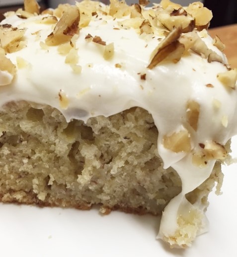 I sprinkled some chopped walnuts on the frosting, but if you don’t like nuts, just leave them out.