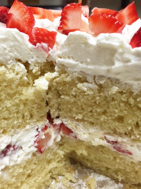 I love strawberries. I love white cake. I love strawberry shortcake. So, why not make a strawberry shortcake cake. This particular cake is my go to white cake. It is easy to make, it’s moist, has a nice light texture and it’s delicious. You can use this cake as a base for so many cakes. You can add citrus zest…..lemon, orange, lime. You can add fruit, right to the batter. Any filling and frosting is good with this cake. It’s just an all around great cake. Trust me, you will use this recipe over and over.