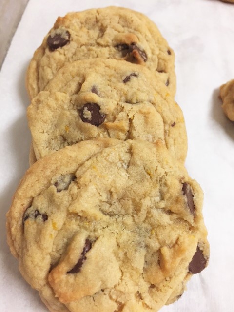 This cookie has good chew, just enough crisp on the edges…..it’s thick, intensely orange and you get your chocolate fix. I think it may be a healthy cookie cuz of the vitamin C in citrus, right? Hmmm.