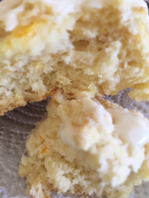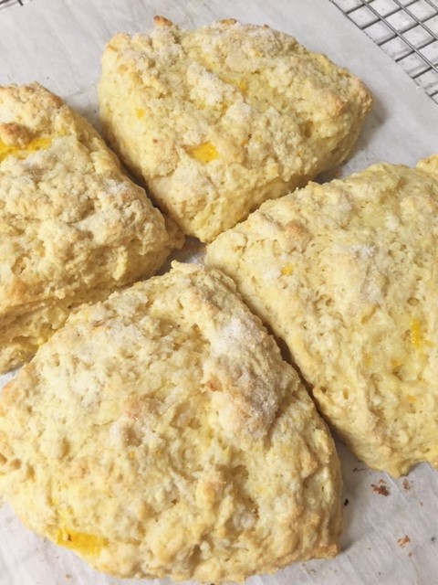 Optional: Once scones have cooled, drizzle with orange glaze (powdered sugar and a couple drops of orange juice)