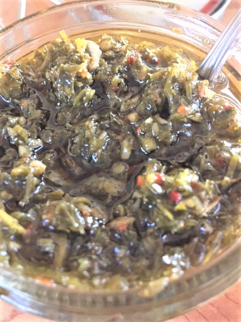 At this point, taste it. It should be slightly tangy and a bit salty. I like mine spicy, so I always add extra red pepper. Place it in a jar and allow the flavors to meld for at least an hour or two.