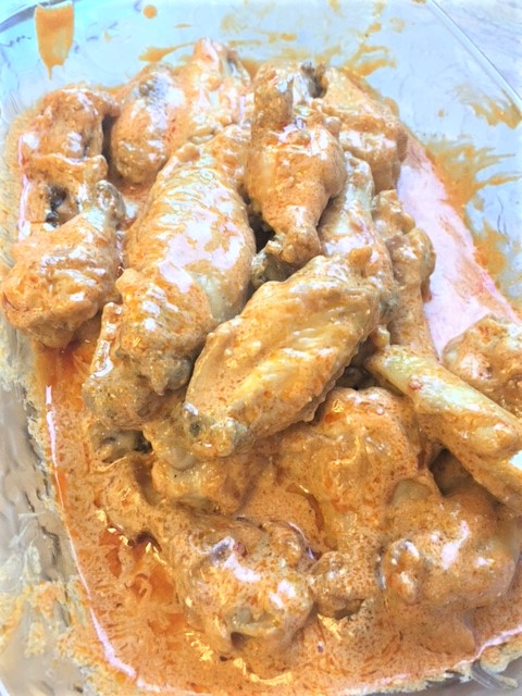 There is a restaurant here in town that serves several kinds of chicken wings. One of my favorites, is the Dirty Blue. Oh boy, oh boy, are they good! The wings are coated in a spicy wing sauce with a hint of blue cheese flavor. I just love them and decided to make my own sauce.