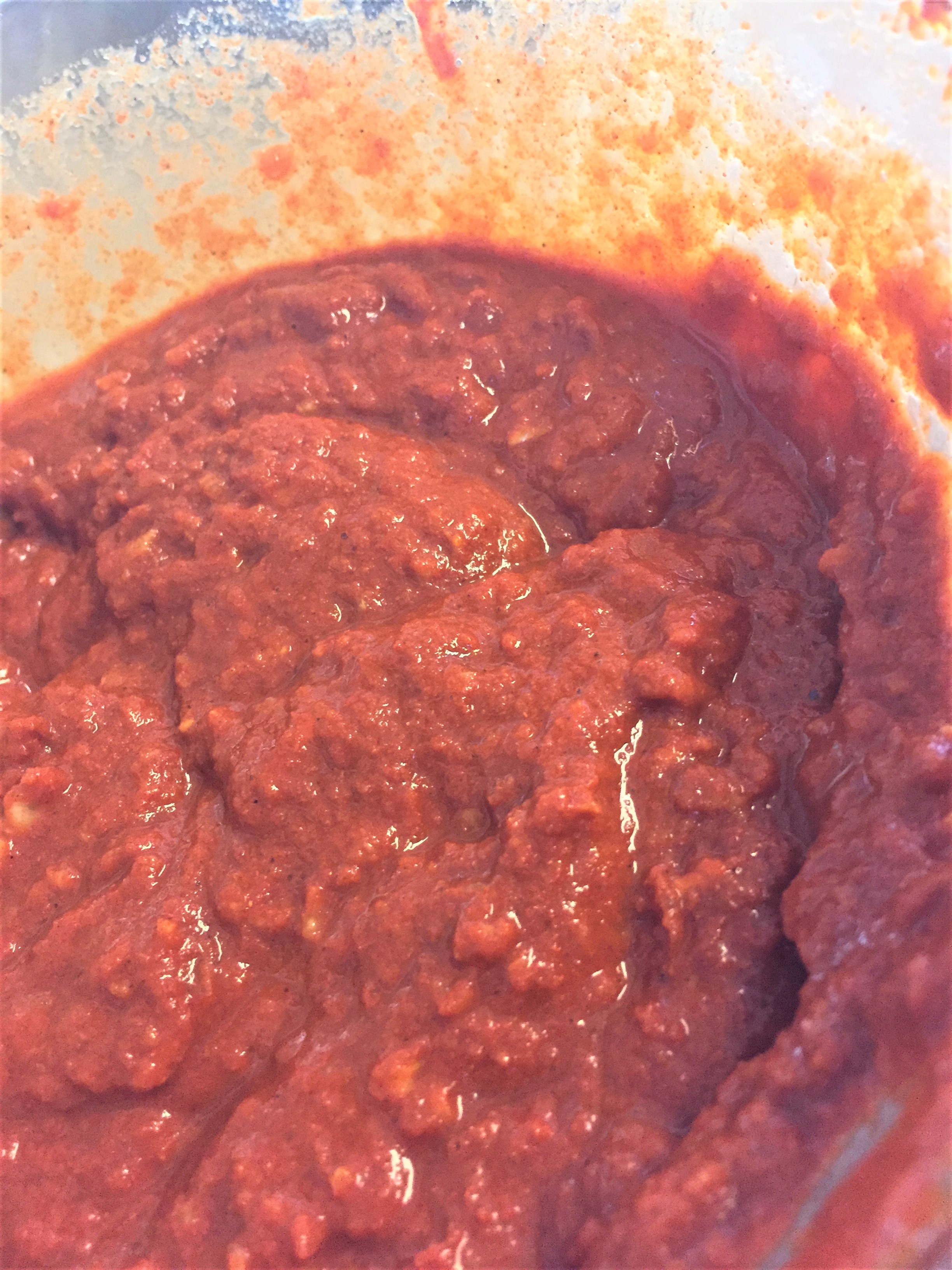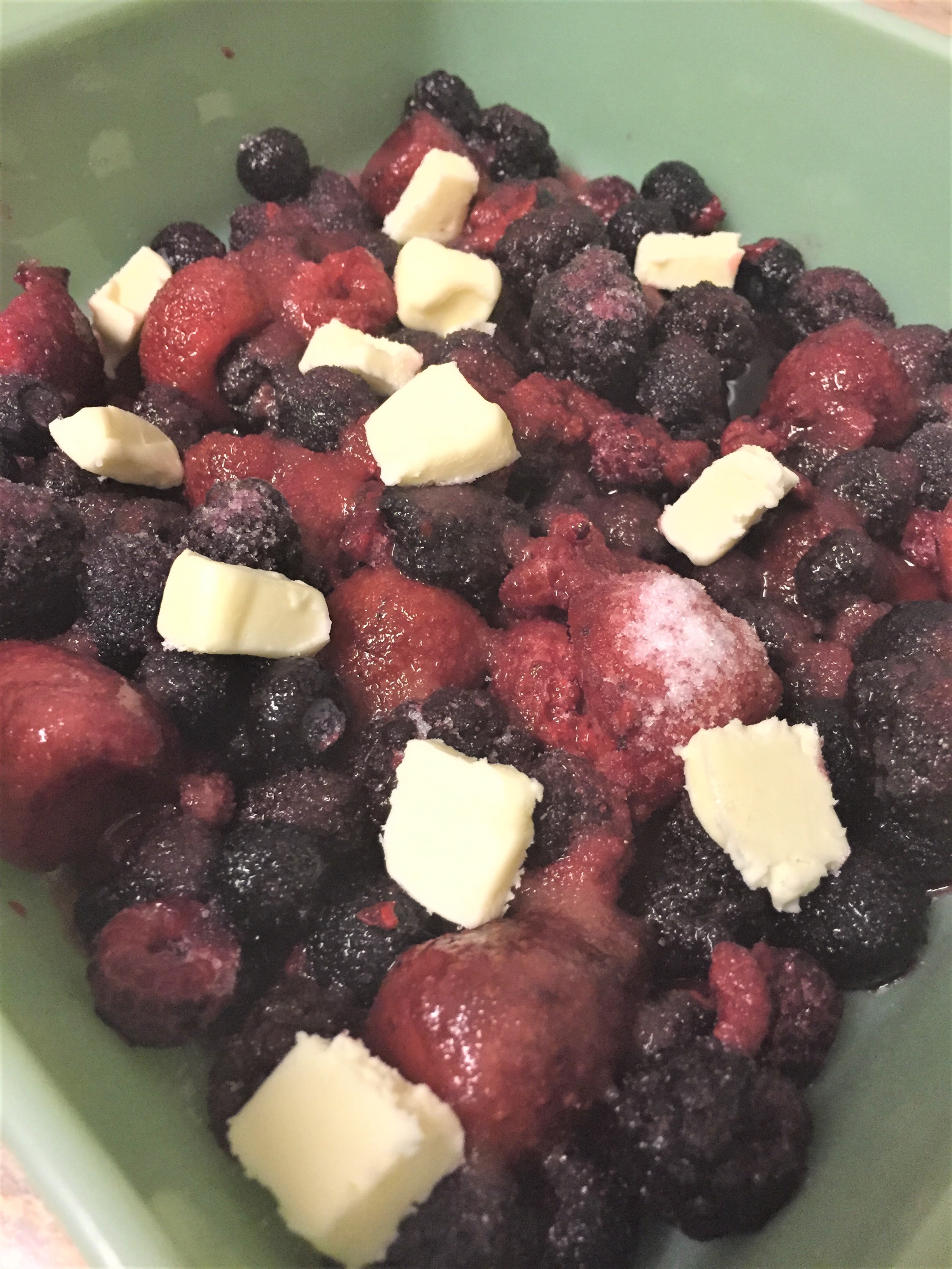 Smash the berries into a puree. You should have about 3/4 cup of puree. I left mind a bit chunky.
