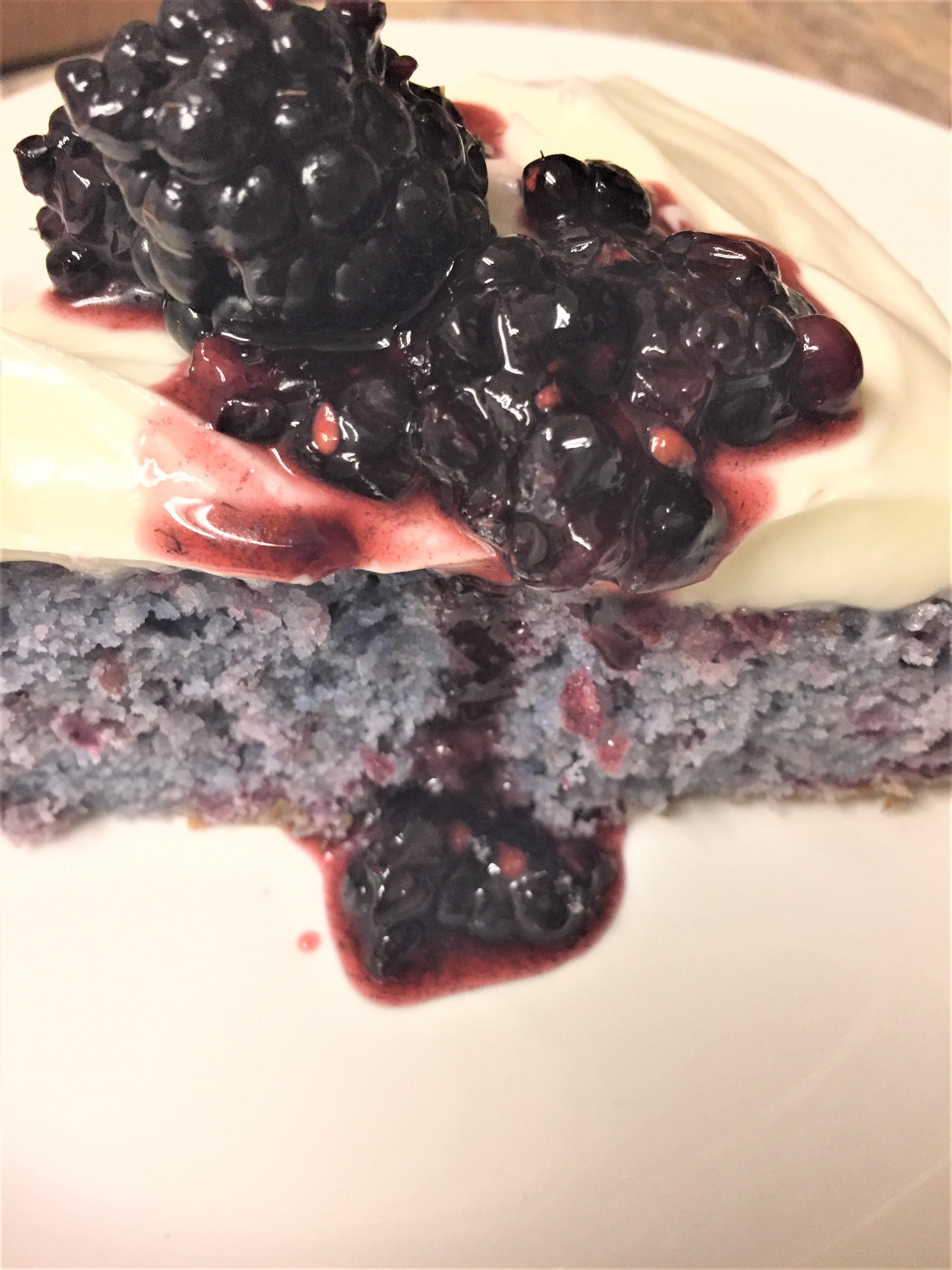 Last week I was looking at a recipe on line and noticed a picture off to the side, of a slice of purple cake. I had to find out what it was! It was just so pretty. Well, it was blackberry cake with cream cheese frosting. OMG! The site was Serious Eats. I knew that I had to make this cake right away. Well, I did make a few adjustments and made it.