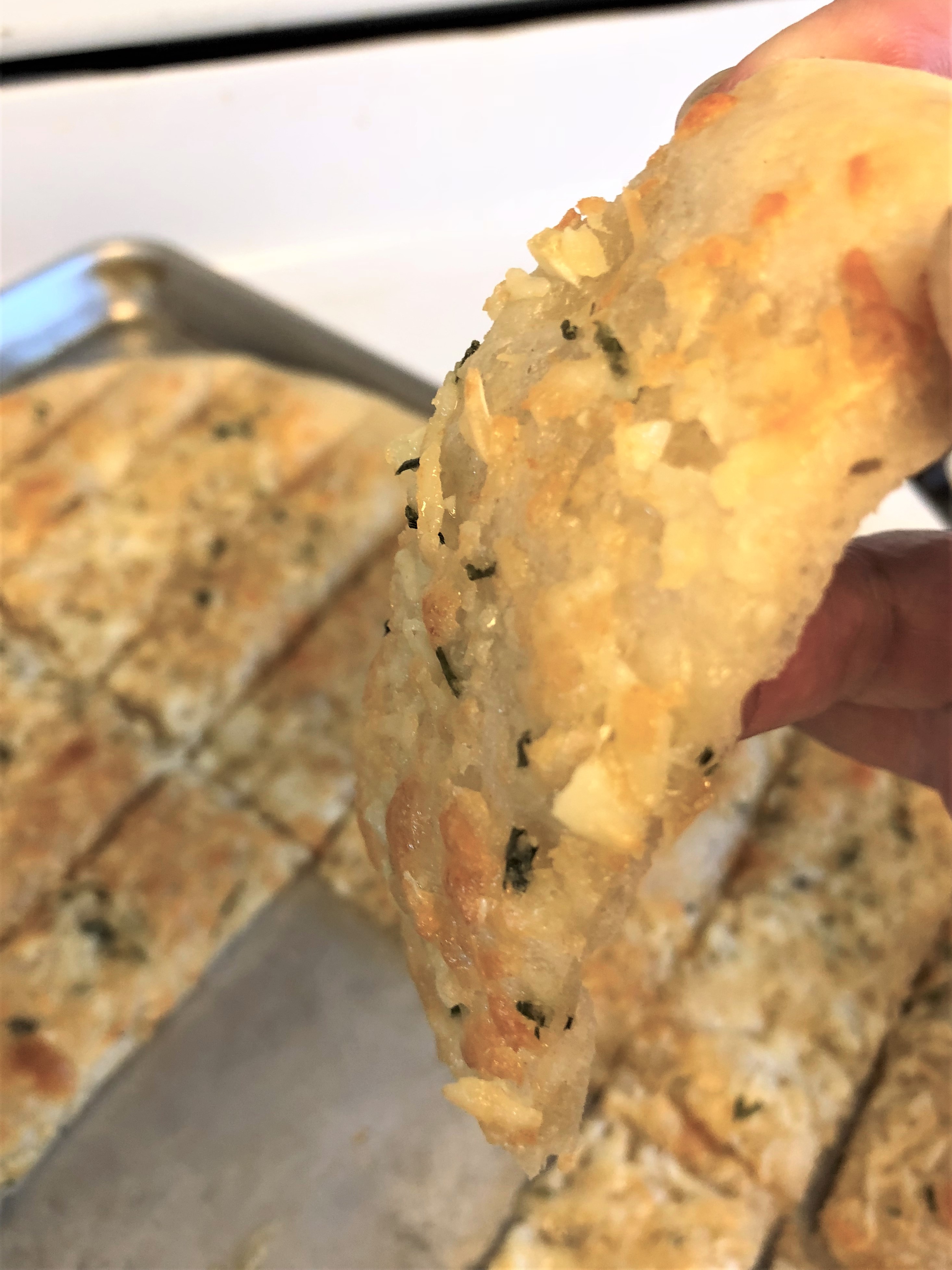Ohhhhhh, these are good. So good. Crispy, chewy, buttery, cheesy and garlicky. Oh, and they are so easy to make.