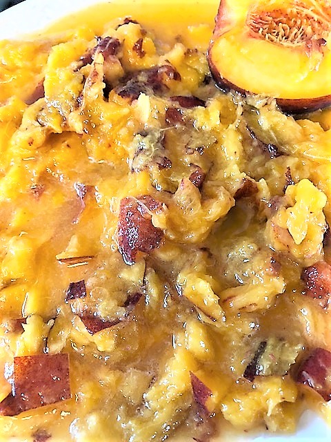 3 medium size peaches (I leave the peels, but you don’t have to)